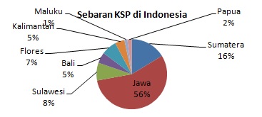 Menurut salah satu Pejabat kemenkop dan UMKM bahwa jumlah Koperasi Simpan Pinjam (KSP/USP) di Indonesia pada akhir 2012 berjumlah 96.032 unit. Jika jumlah desa/kelurahan di Indonesia sebanyak 79.075, maka hampir setiap desa di Indonesia memiliki KSP/USP. Cuma sayang, penyebaran KSP di Indonesia tidak merata. Hampir sebagaian besar menumpuk di Pulau Jawa (56%), dan terkecil di Maluku (1%).