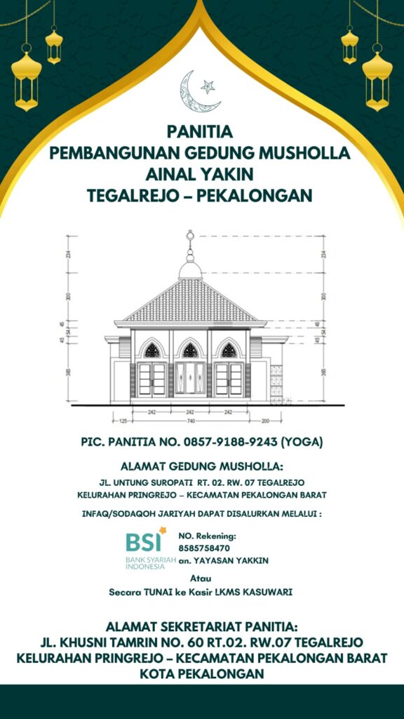 Panitia Pembangunan Musholla telah dibentuk dan disahkan oleh Pengurus Musholla Ainal Yakin dengan susunan sebagaimana terlampir